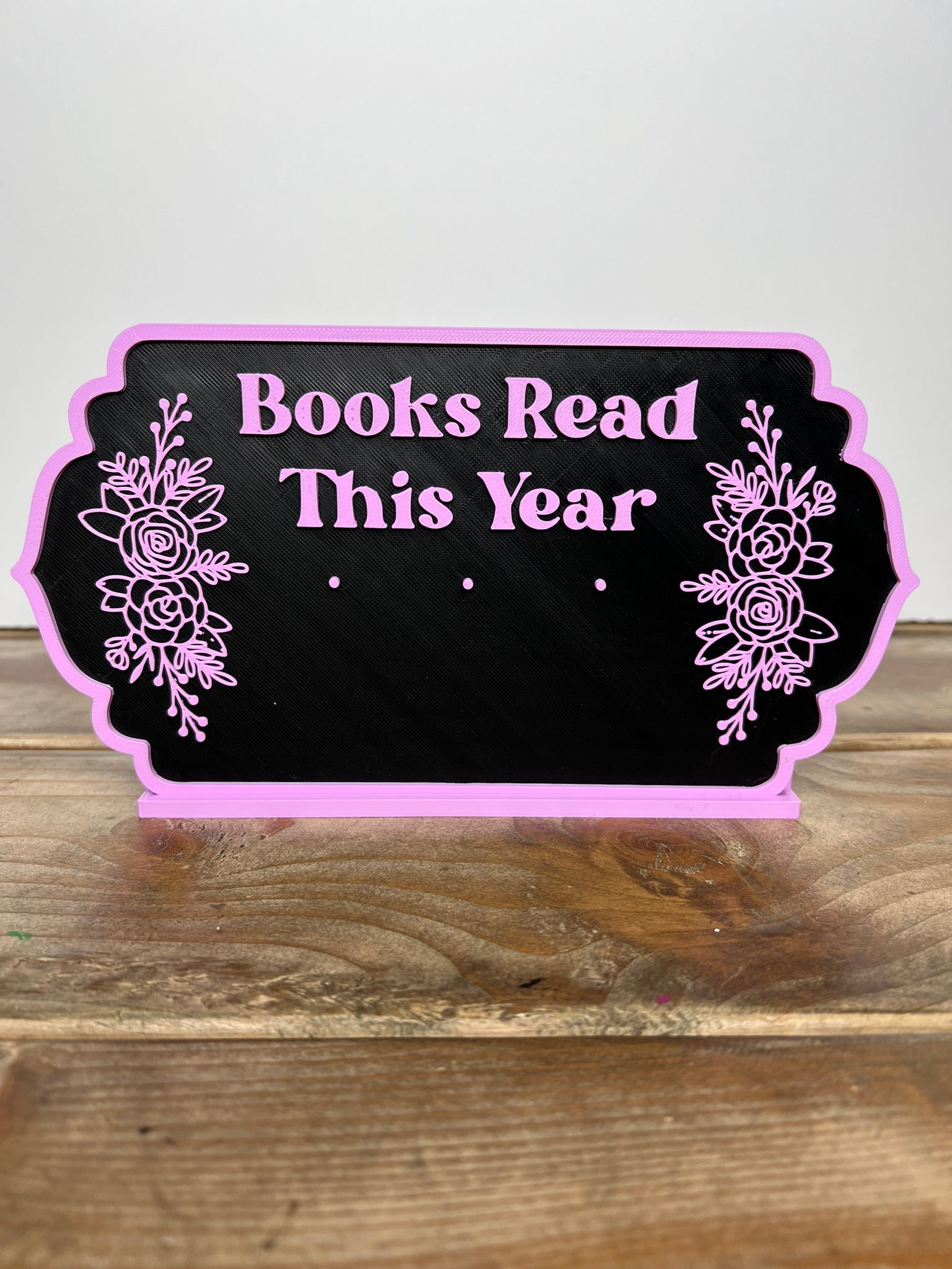 This 3D printed display features interchangeable number tags so you can proudly show off how many books you’ve read this year. The elegant floral details and two-tone design make it a perfect addition to your bookshelf, reading nook, or desk.