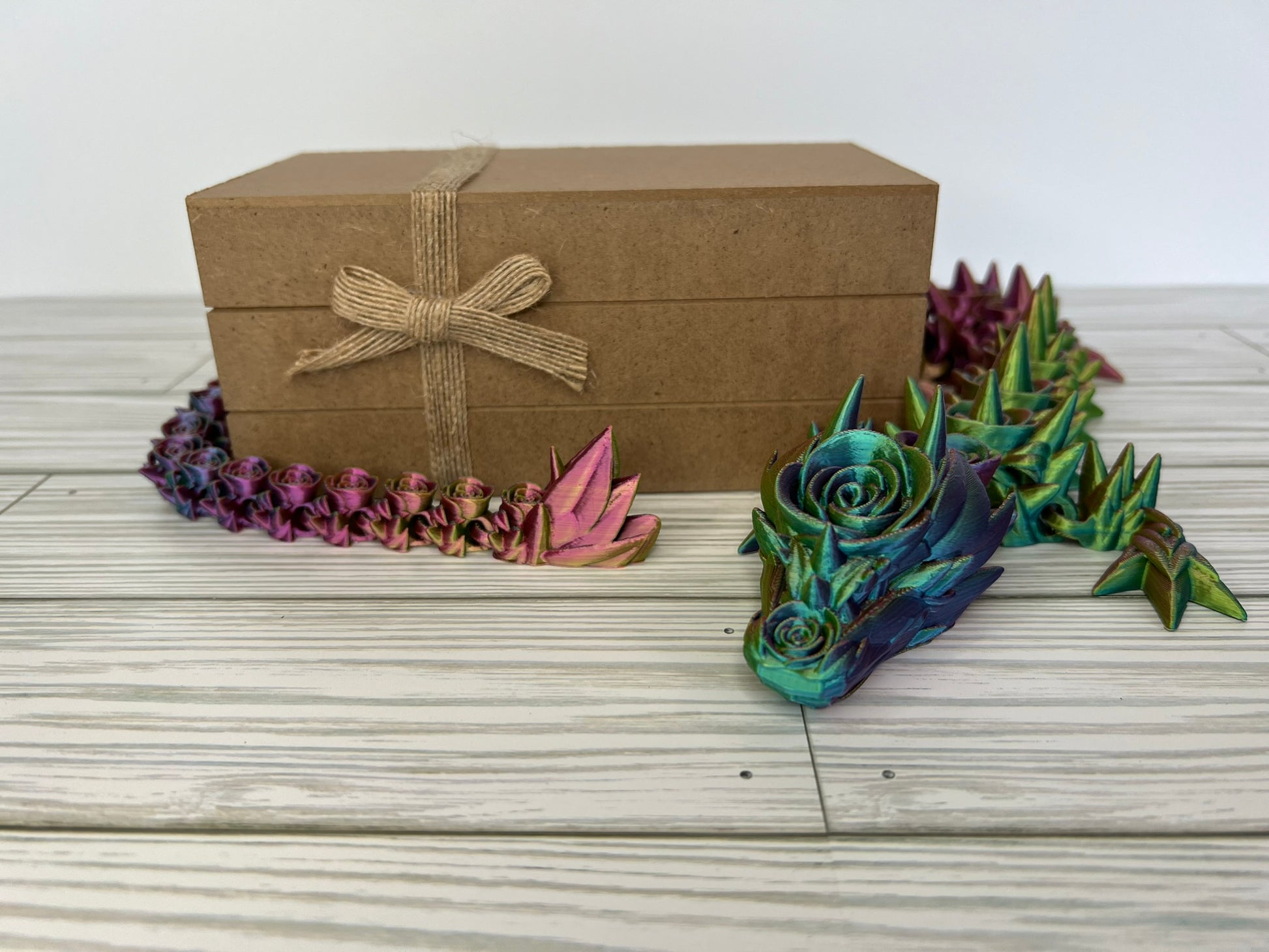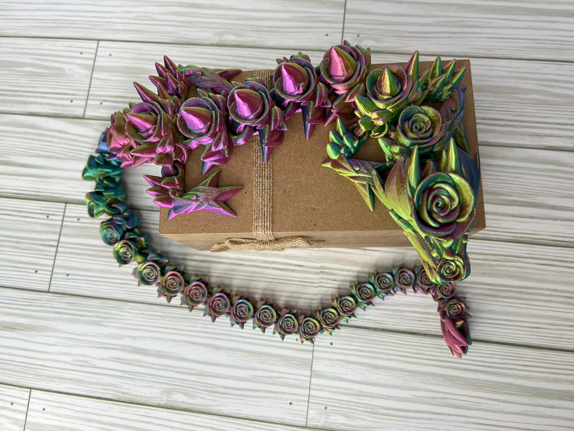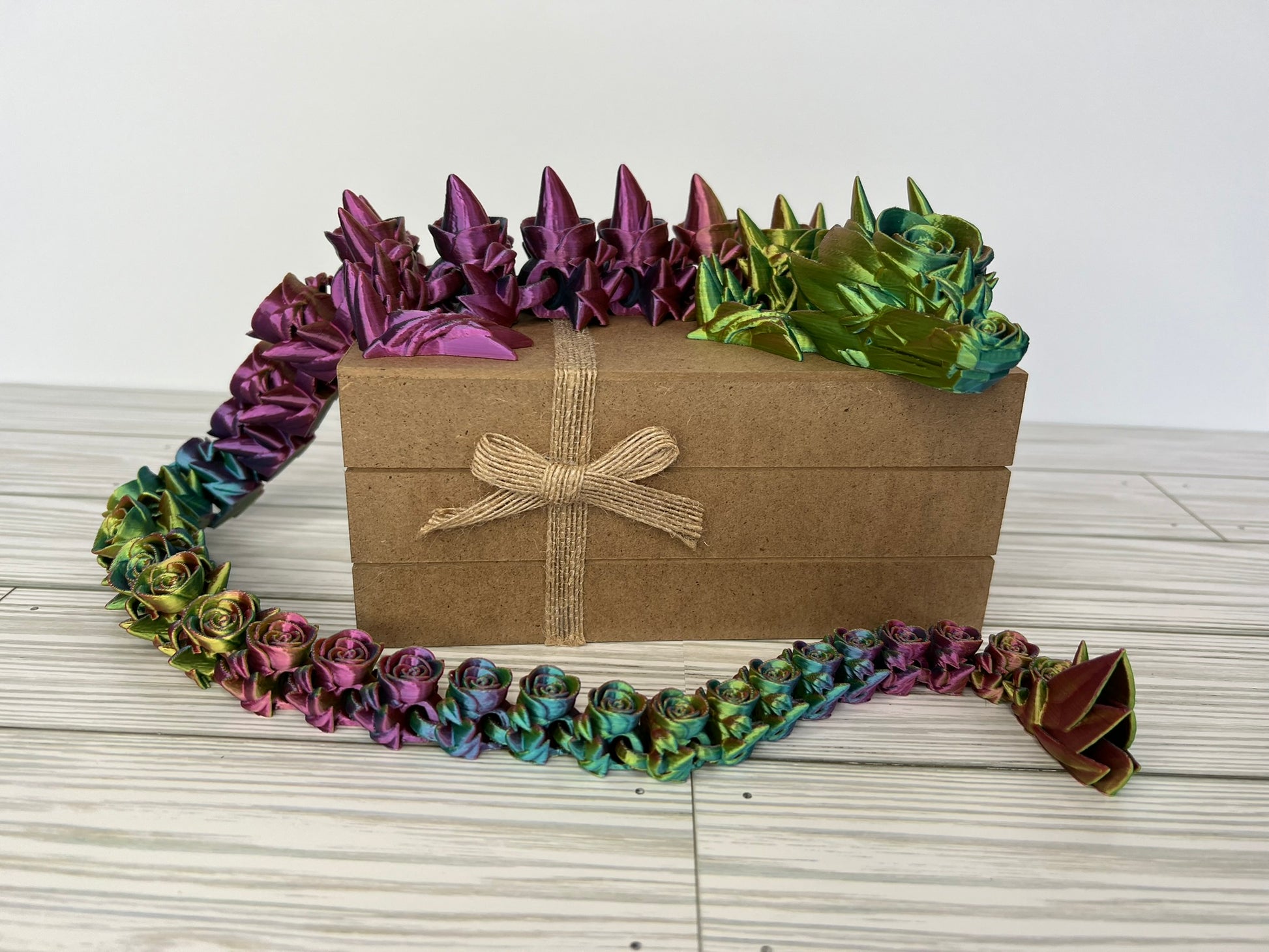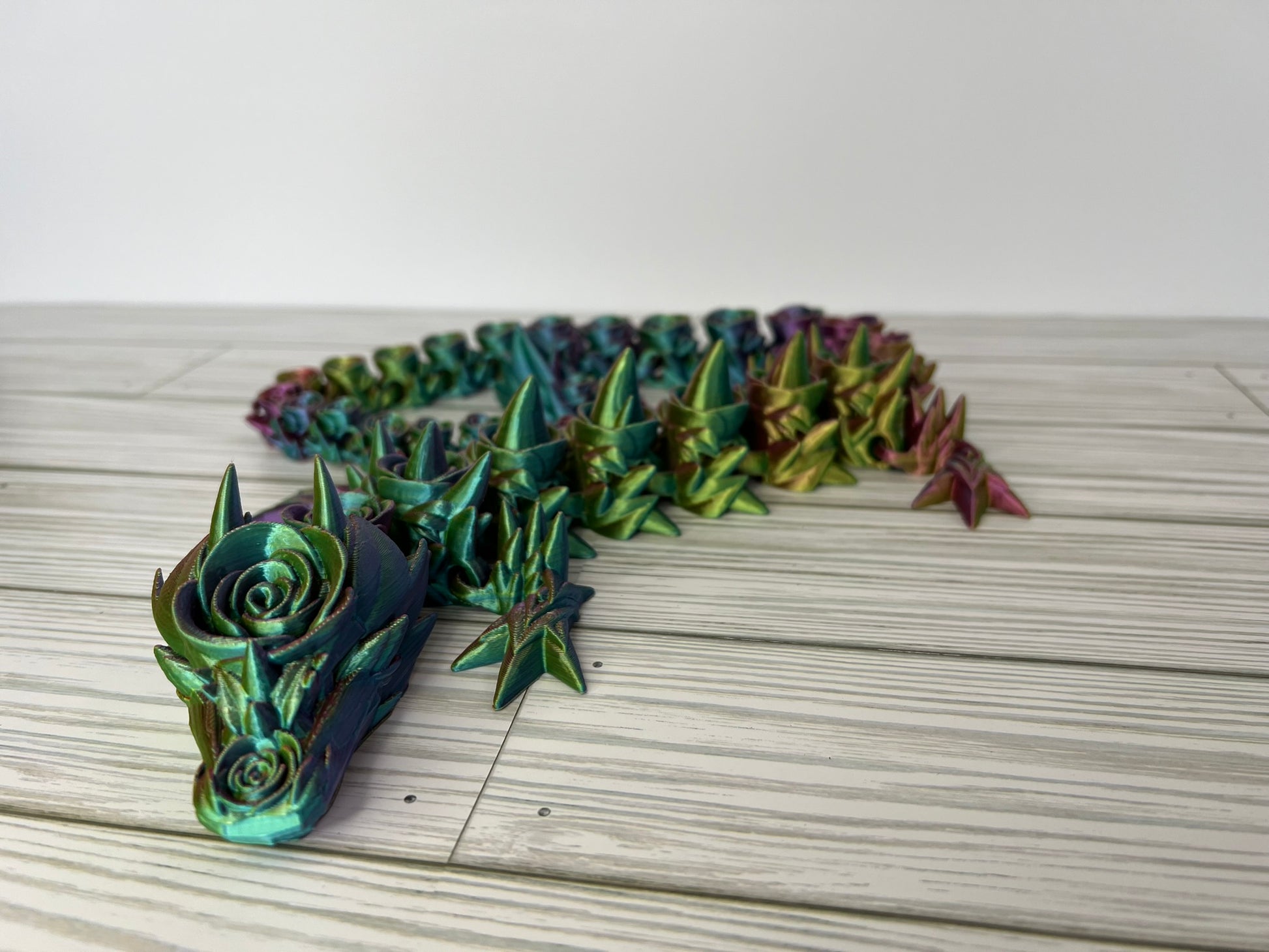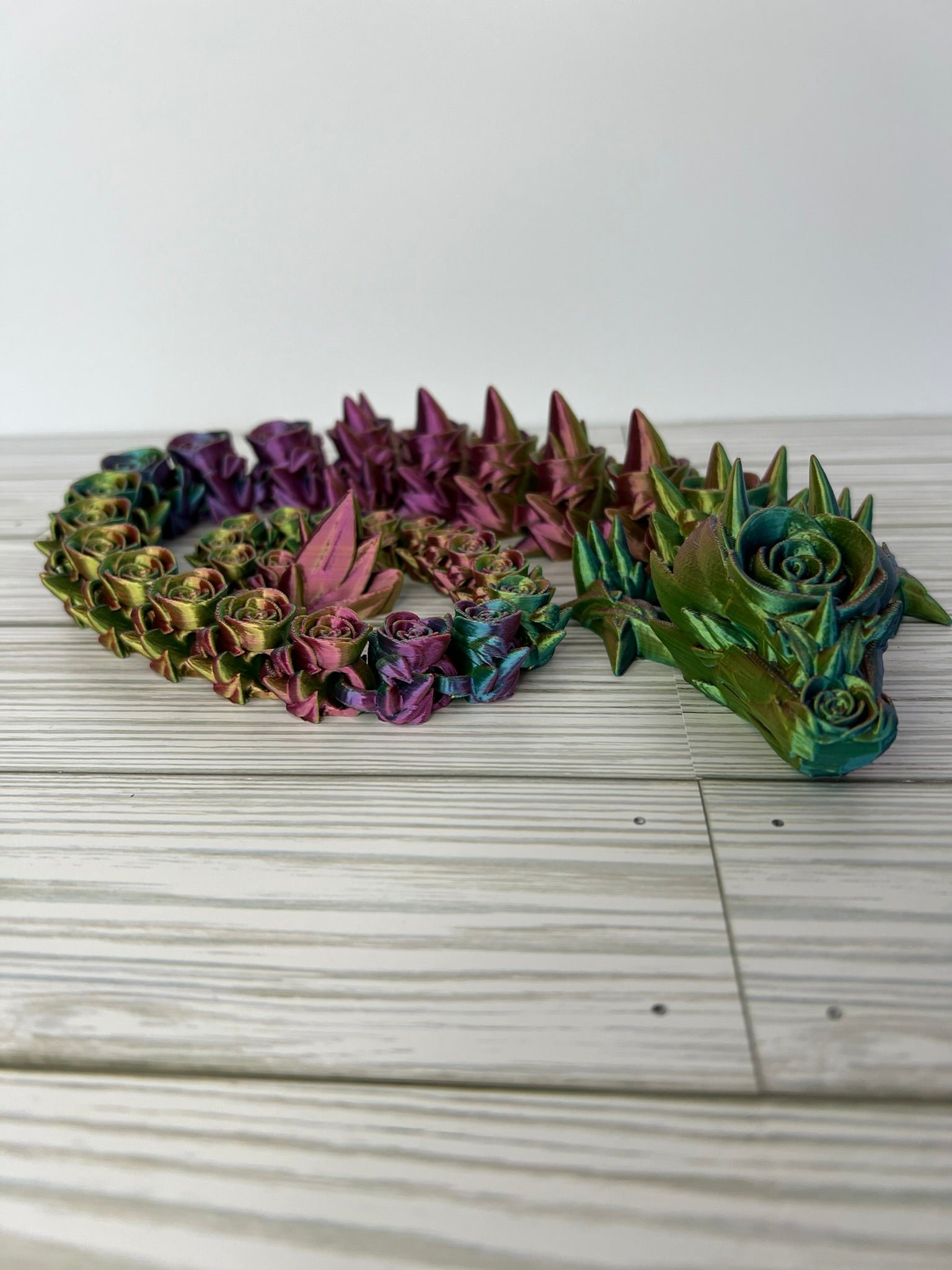 Indulge in the elegance of our 3D printed articulated rose dragon, a breathtaking creation that intertwines nature's beauty with mythical charm. Standing at an epic 29 inches long, this enchanting dragon is composed entirely of intricately crafted roses, forming a stunning and articulated masterpiece. Each petal and detail is delicately designed, bringing to life unique fusion of floral grace and dragon mystique. A mesmerizing addition to any collection, this rose dragon is a testament to the seamless blend of artistry and imagination.