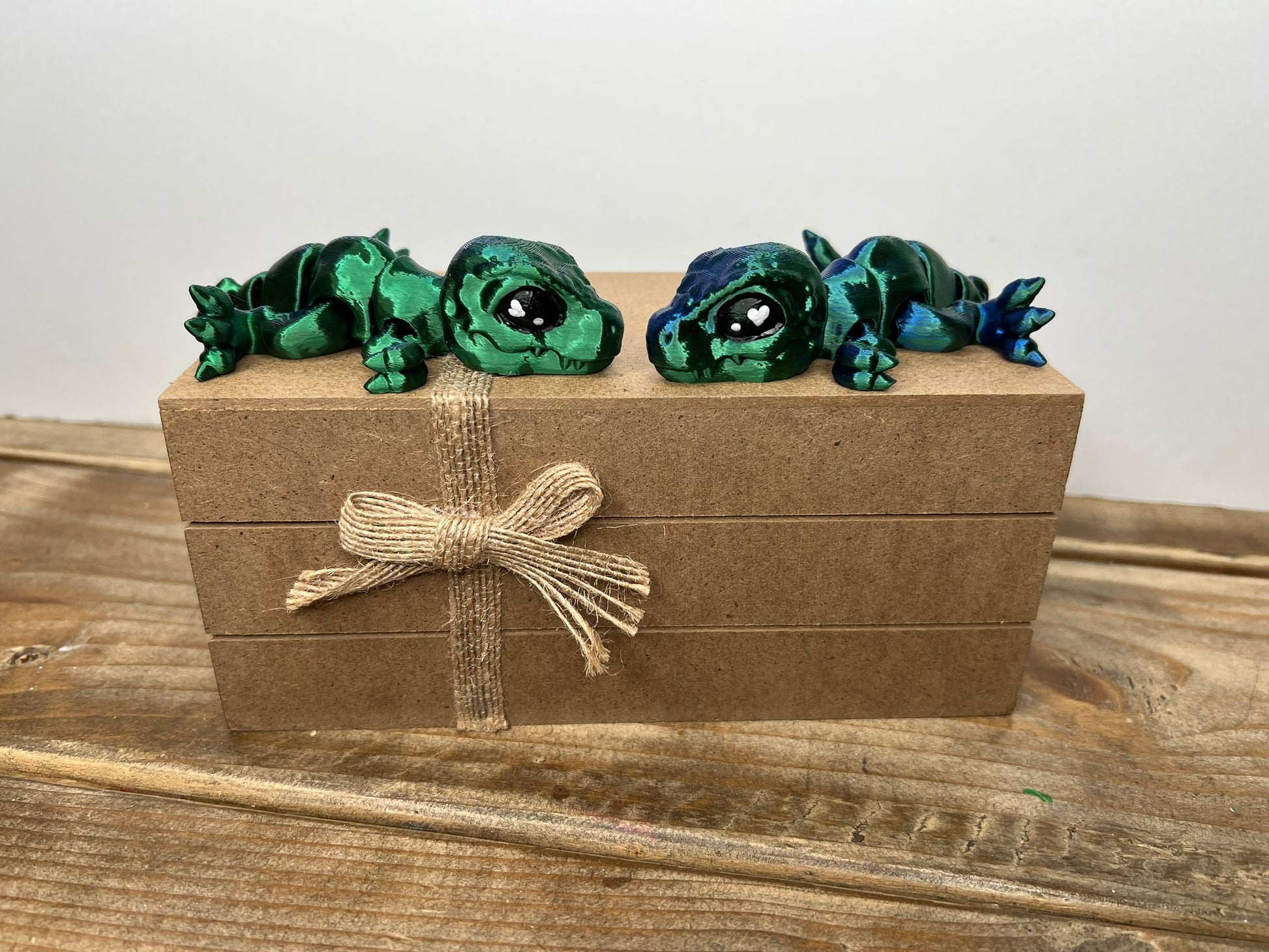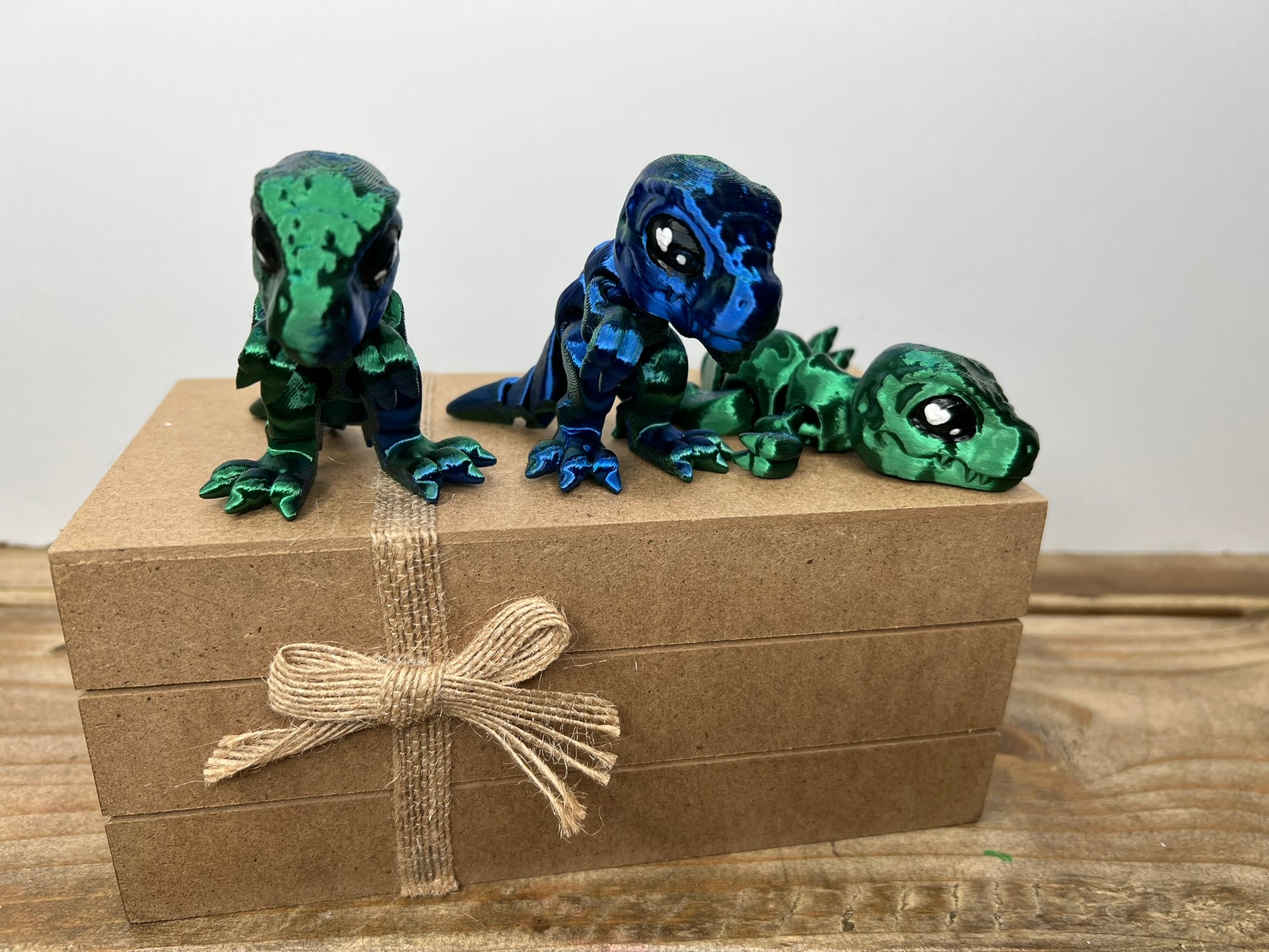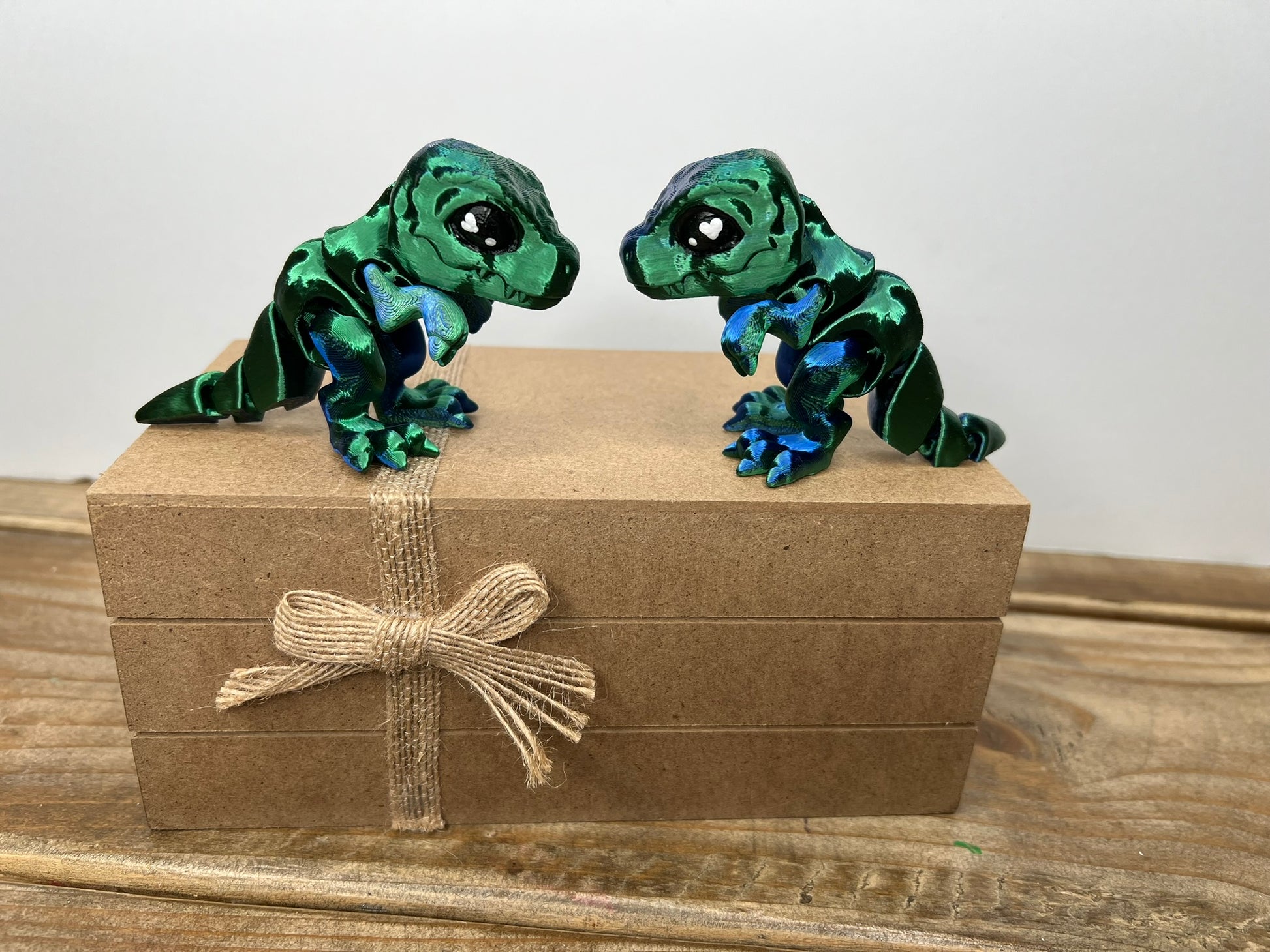 Prepare to fall head over heels for these charming 3D printed miniature t rex! Featuring lovable Valentine heart eyes and movable legs and tail, they are a must-have for any collection. Don't pass up these one-of-a-kind and adorable creatures!